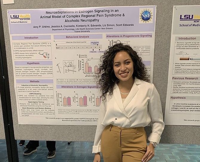 Aside from myself, Amy was the first rotating student to contribute to the Complex Regional Pain Syndrome and alcoholic neuropathy project. During her summer in the Edwards Lab, Amy optimized Western blotting conditions for estrogen and progesterone receptors in the cingulate cortex, and she presented this work at LSUHSC'S Summer Research Internship Poster Day.